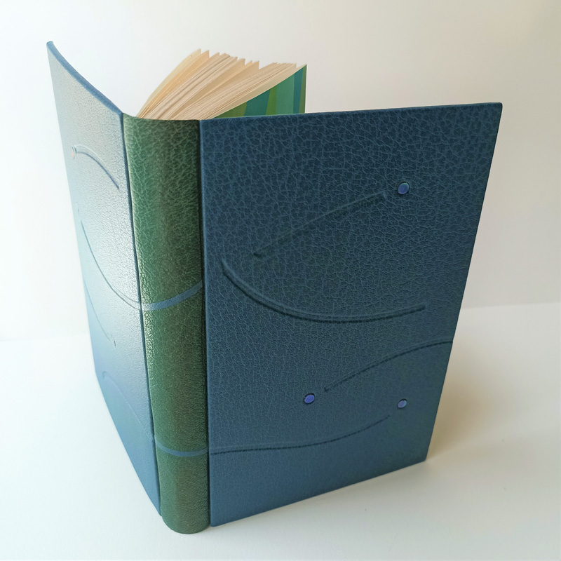 Afin que le résultat corresponde pleinement à votre goût, Céline Giordano reste à l’écoute de toutes vos propositions. Elle peut exécuter la reliure que vous avez imaginée ou vous proposer une œuvre unique. Dans ses créations, Céline Giordano privilégie les décors épurés, les associations de matières et de couleurs, ainsi que l’assortiment avec les gardes en papier marbré qui peut être réalisé sur mesure par des artisans français.